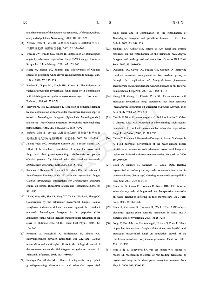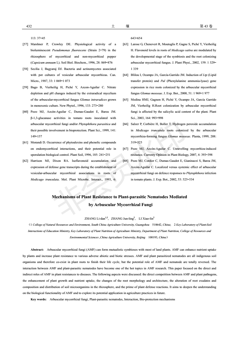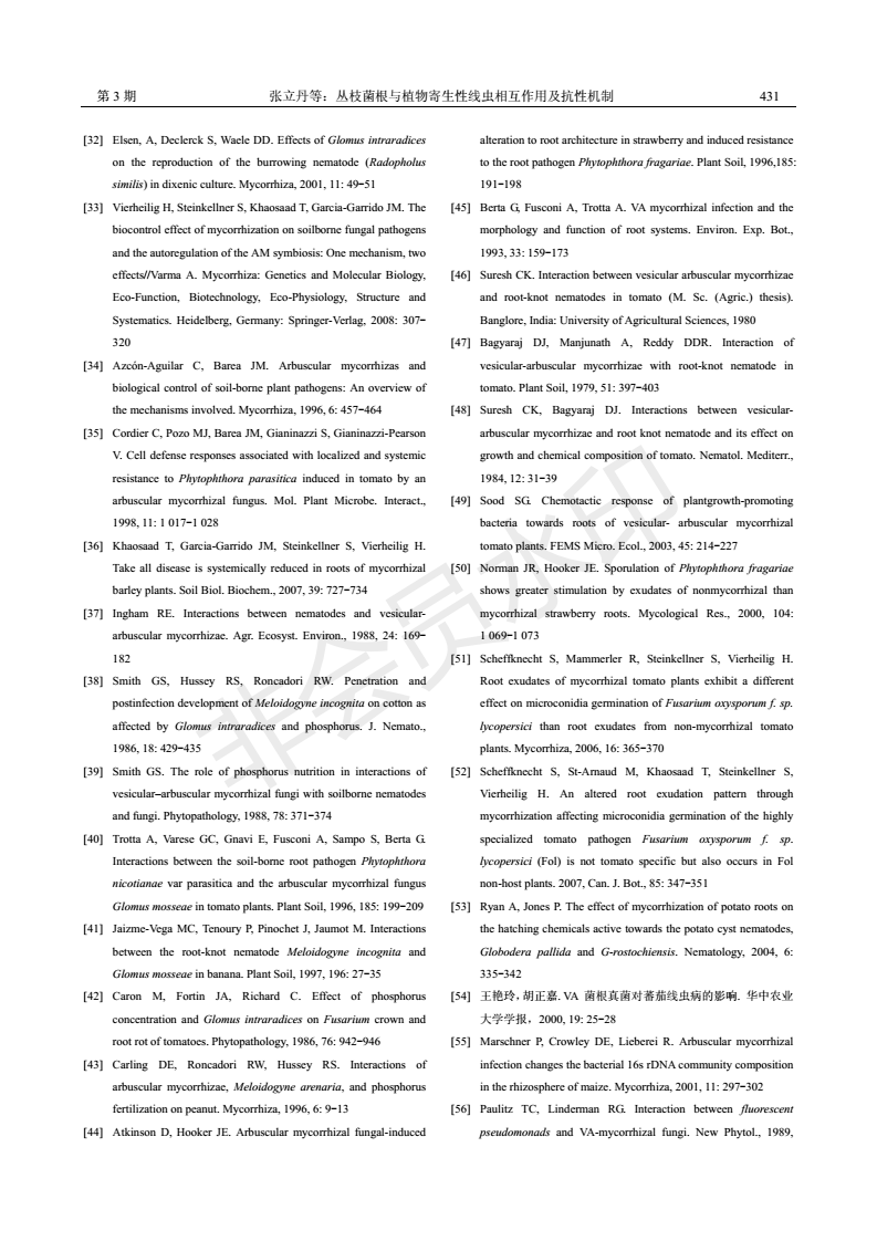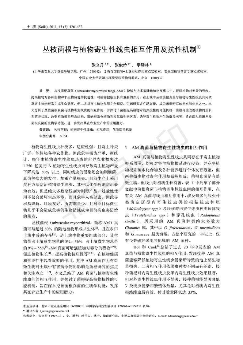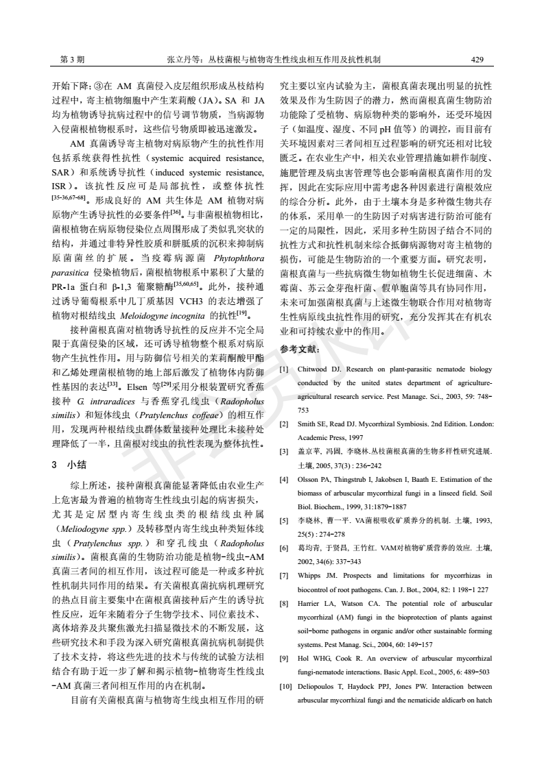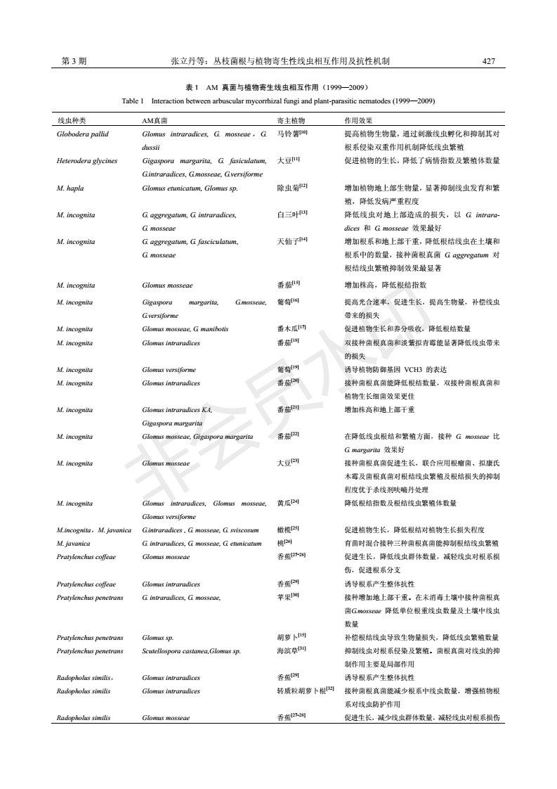 丛枝菌根与植物寄生性线虫相互作用及抗性机制