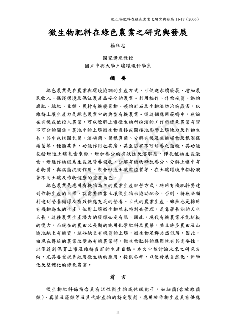 微生物肥料在绿色农业之研究与发展