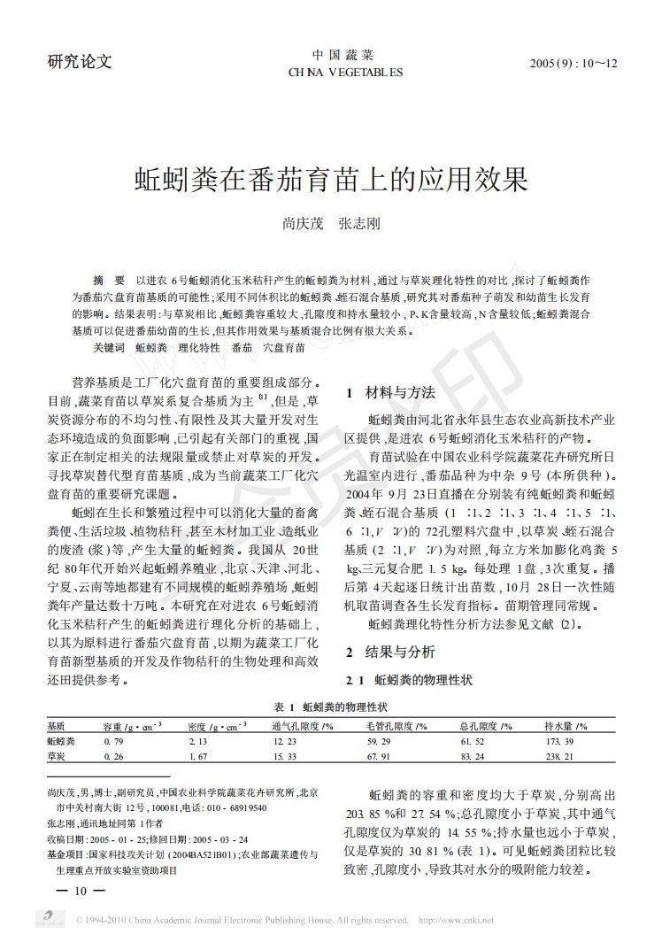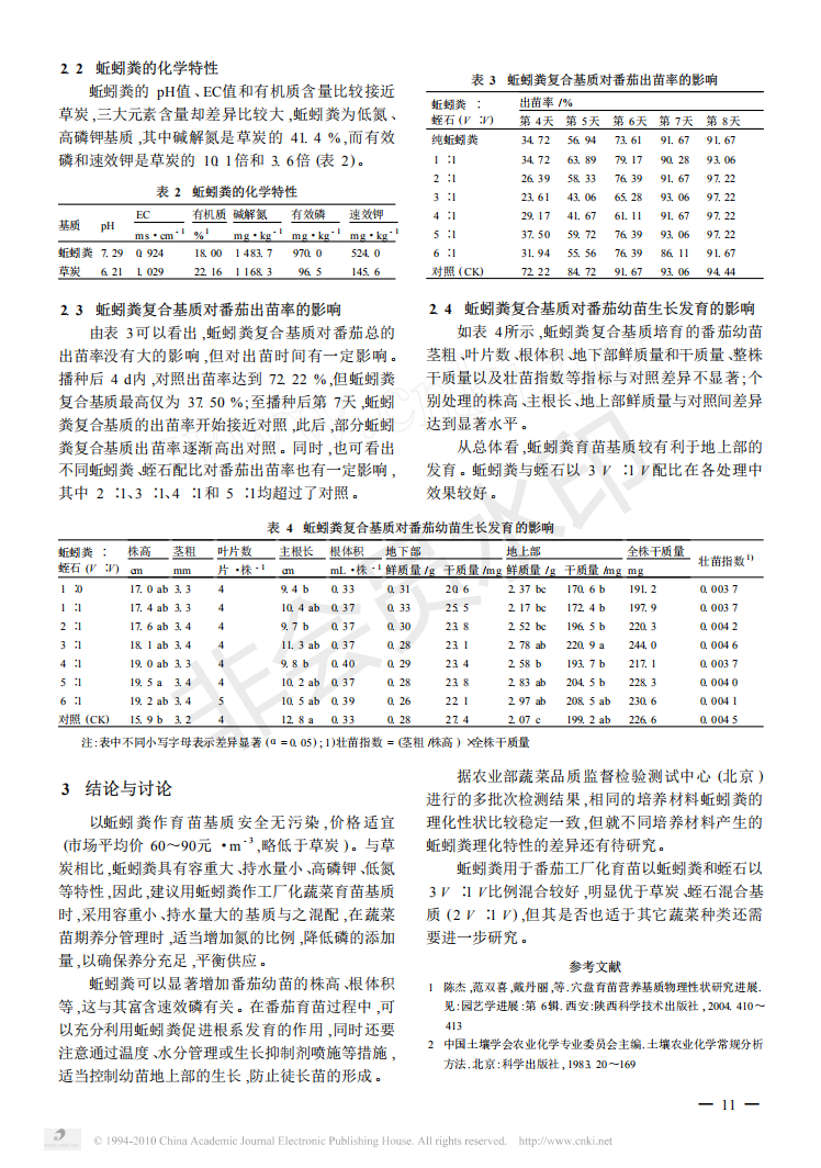 蚯蚓堆肥替代草炭作为甘蓝和西葫芦育苗基质研究