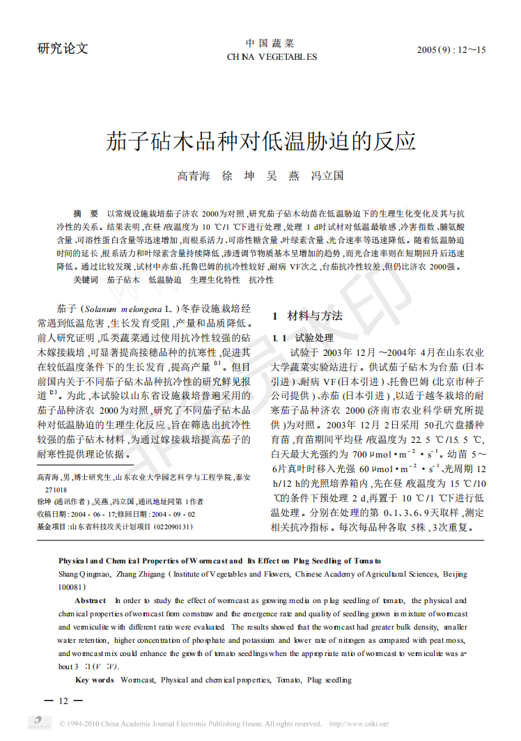 蚯蚓粪基质黄瓜,西瓜穴盆苗耐热性研究