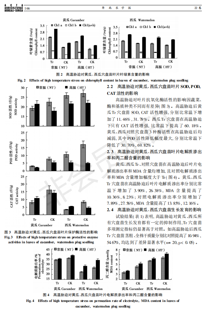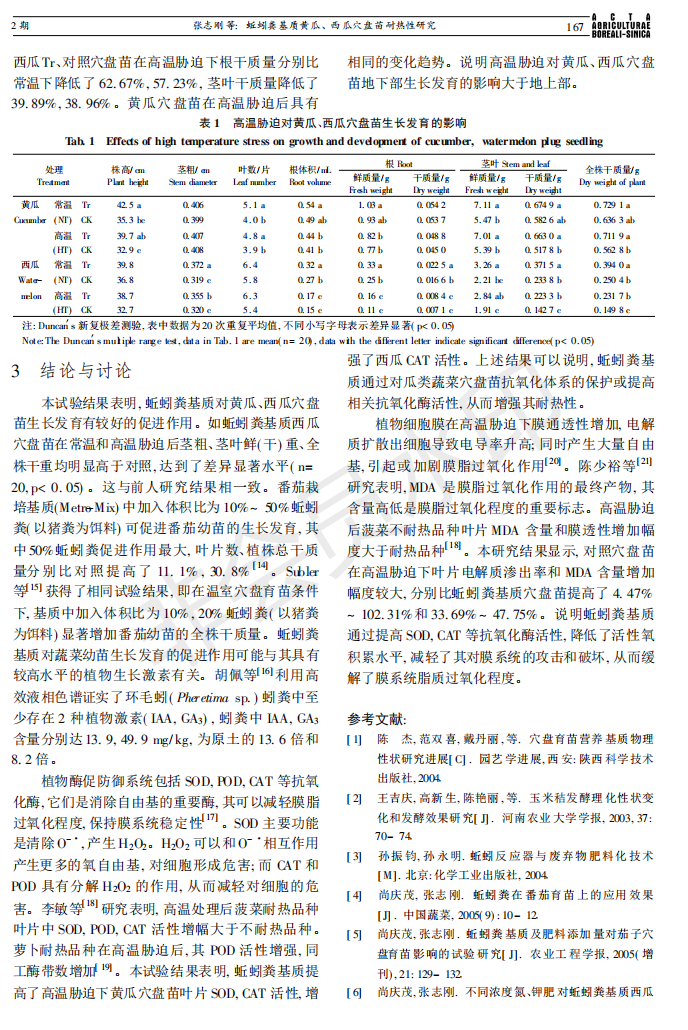 蚯蚓粪基质黄瓜,西瓜穴盆苗耐热性研究