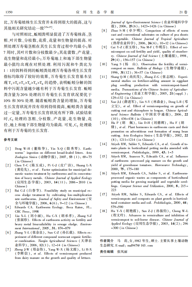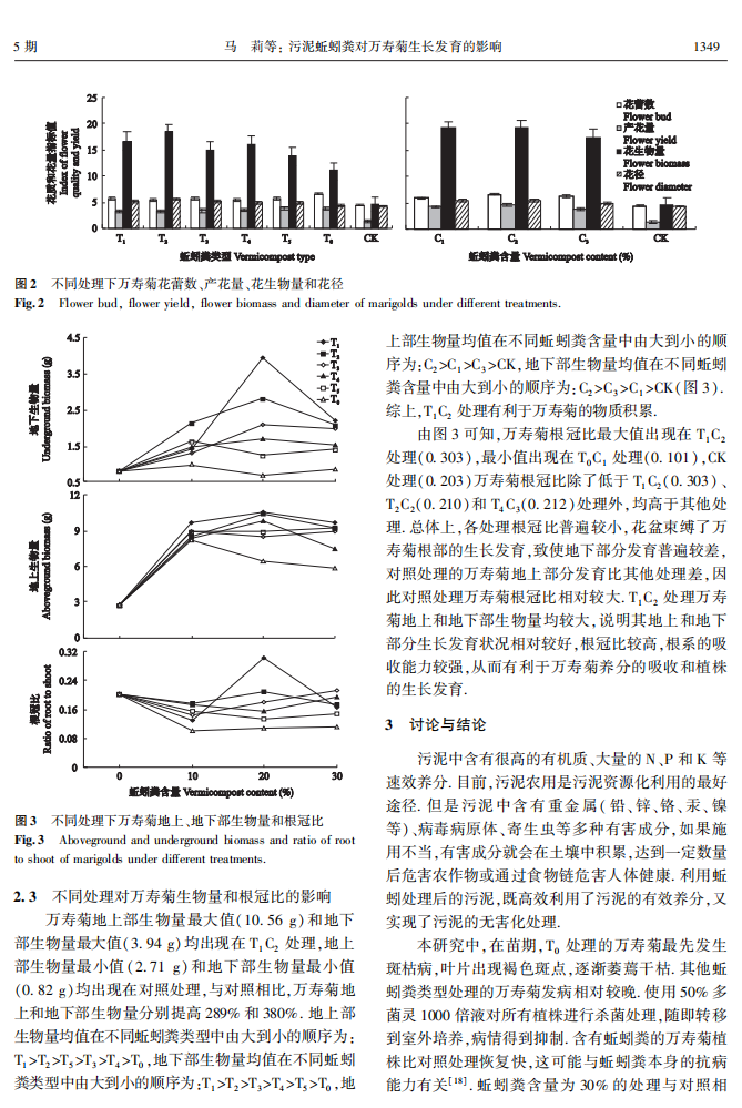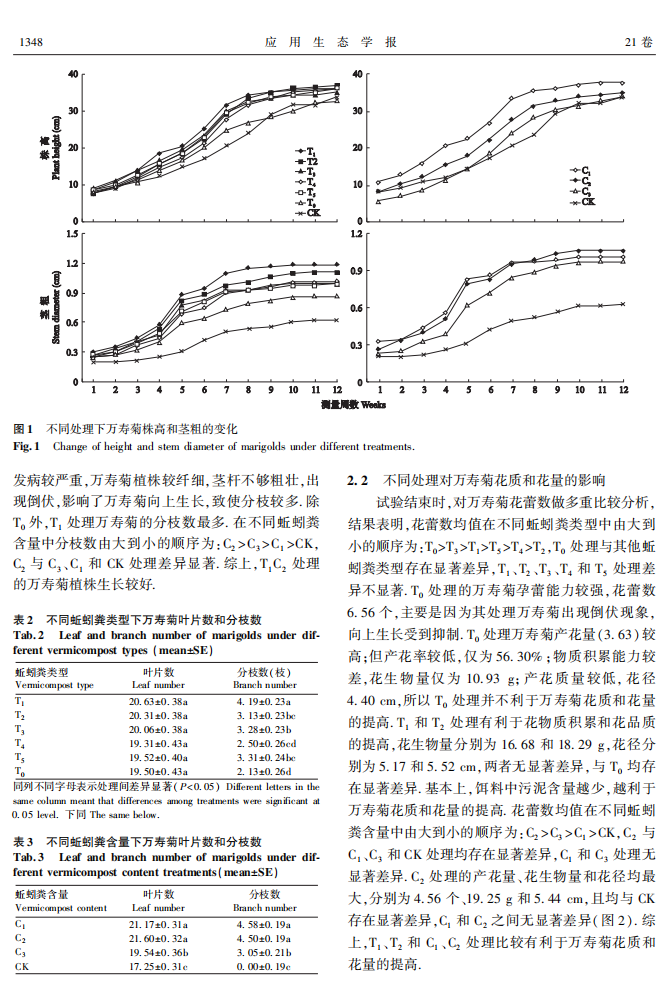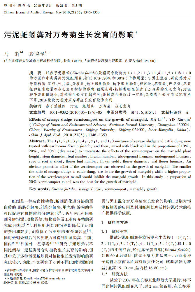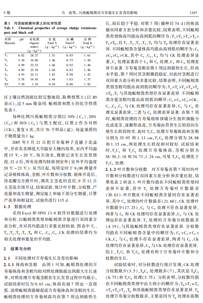 污泥蚯蚓粪对万寿菊生长发育的影响