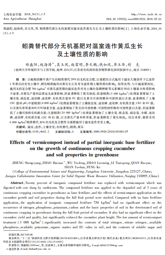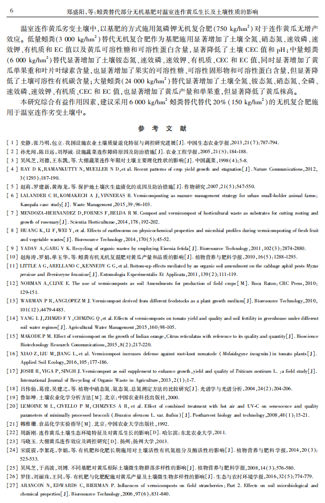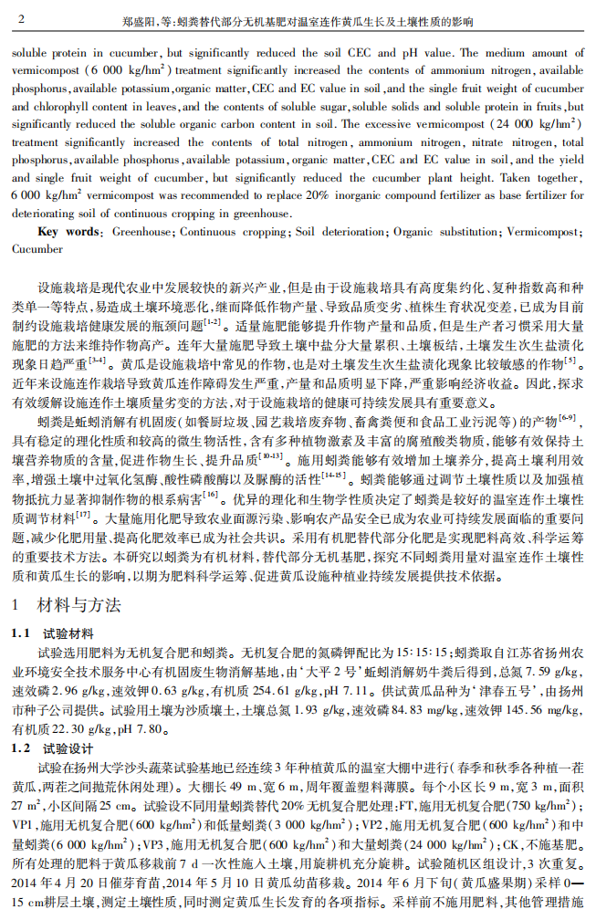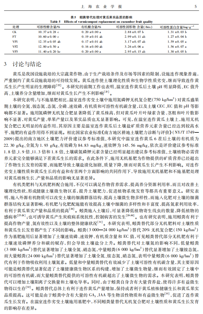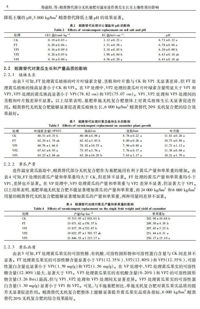 蚓粪替代部分无机基肥对温室连坐黄瓜生长及土壤性质的影响