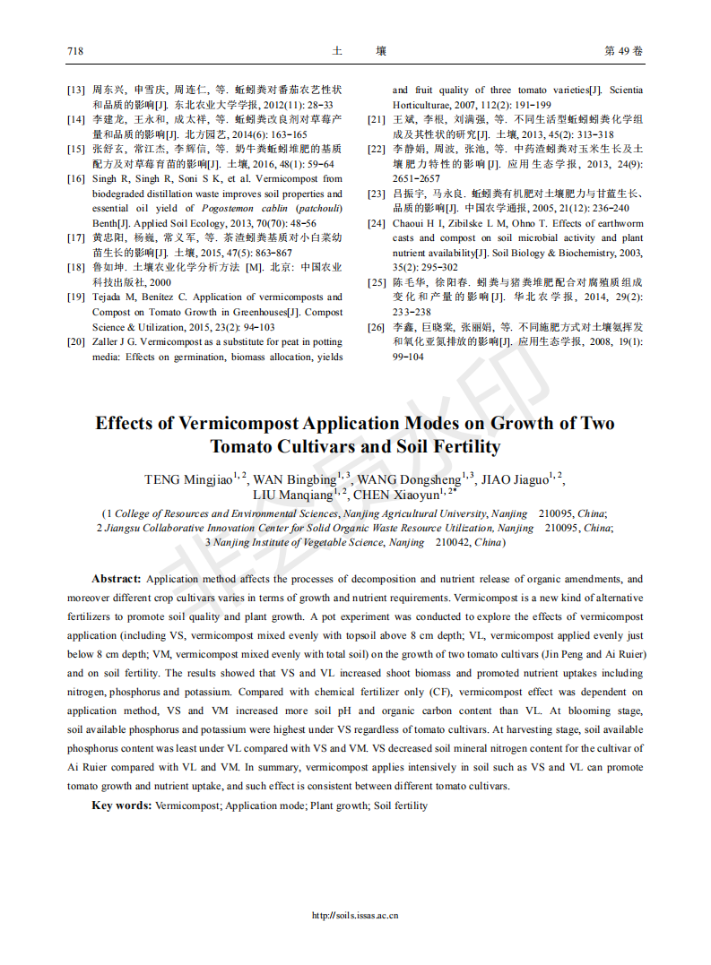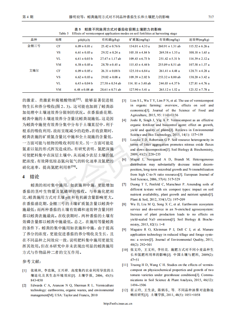 蚓粪施用方式对不同品种番茄生长和土壤肥力的影响
