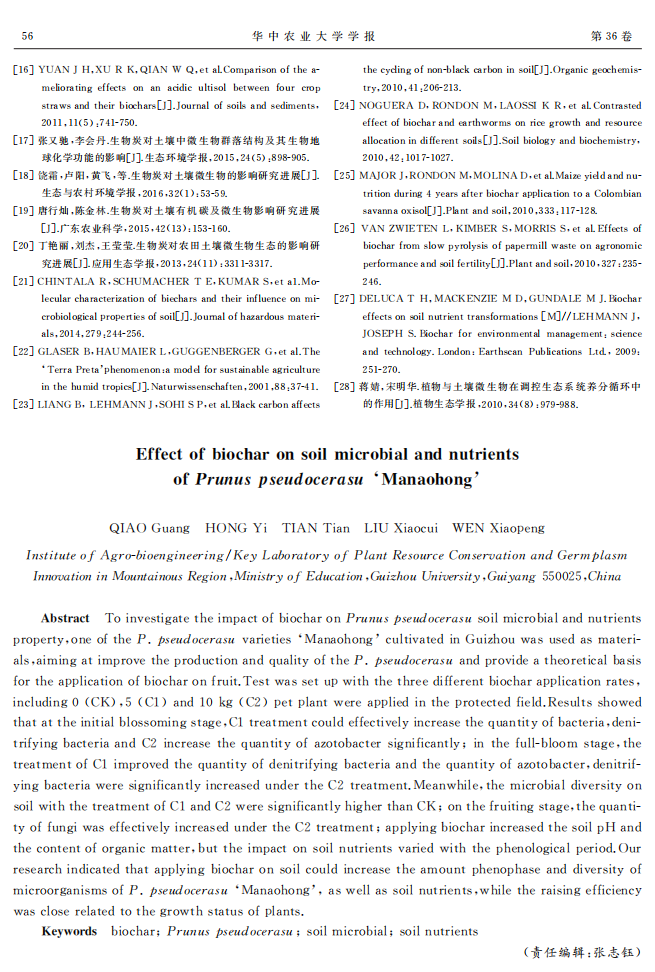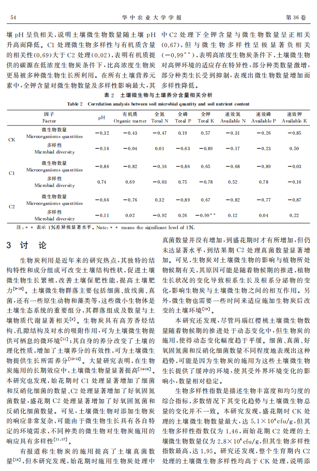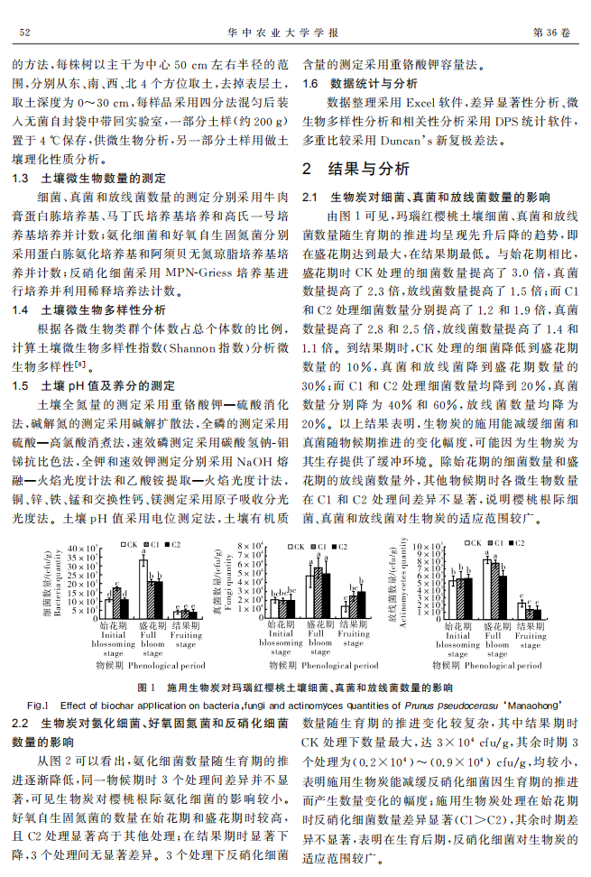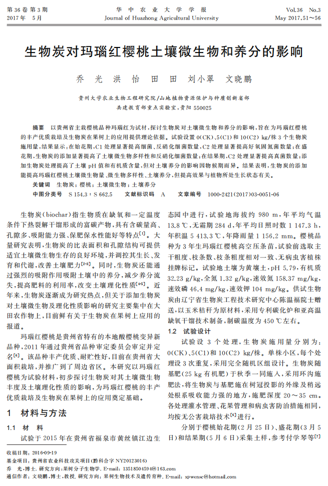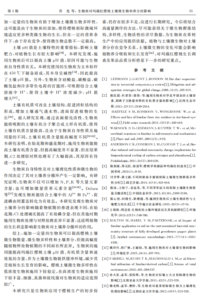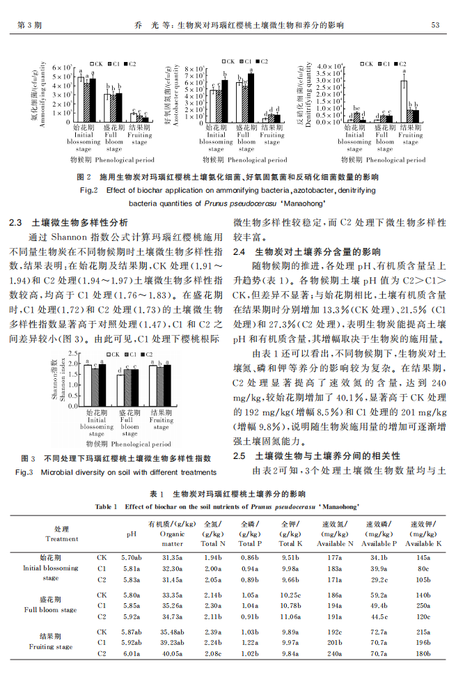 生物炭对玛瑙红樱桃土壤微生物和养分的影响