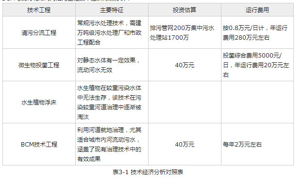 3.5.2 BCM与现有城市内河治污工程技术经济对照分析: