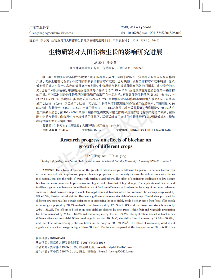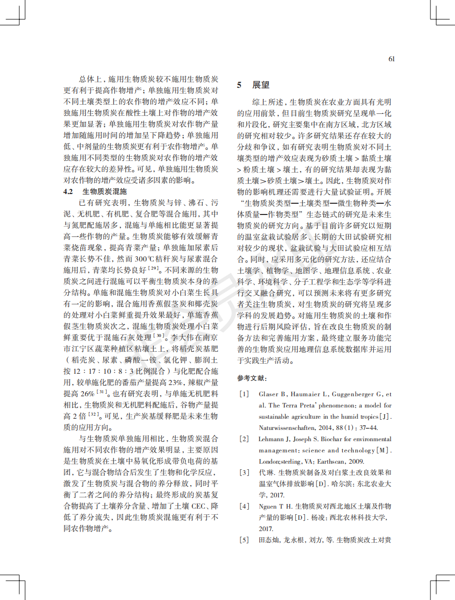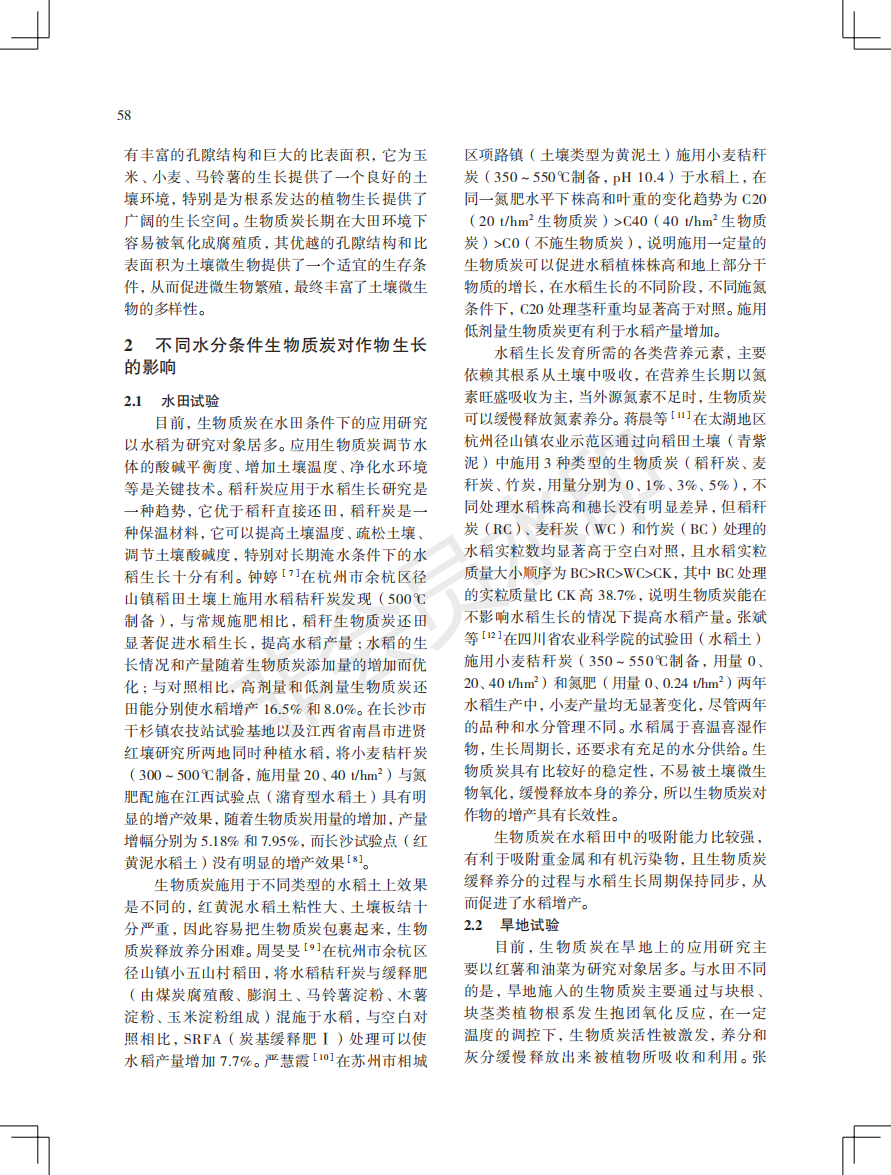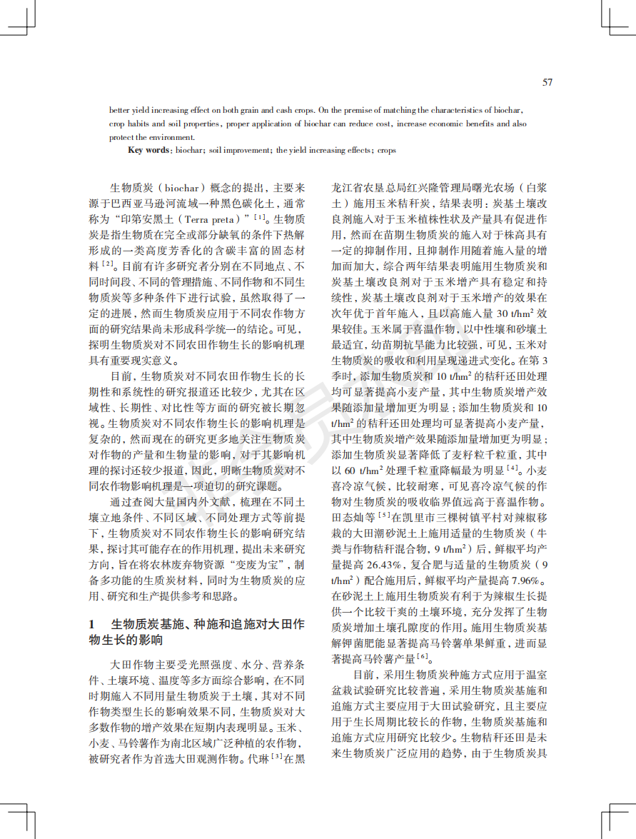 生物质炭对大田作物生长的影响研究进展