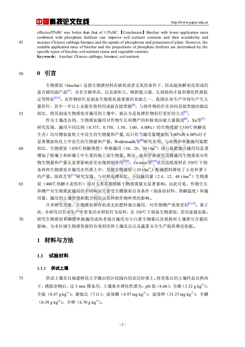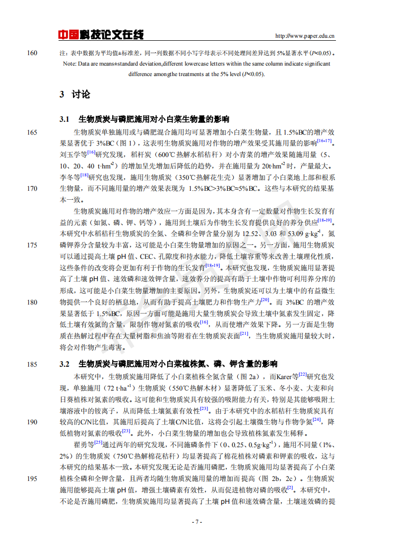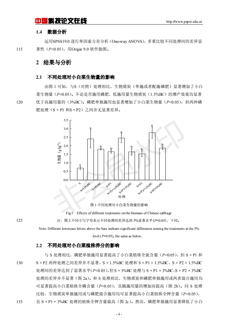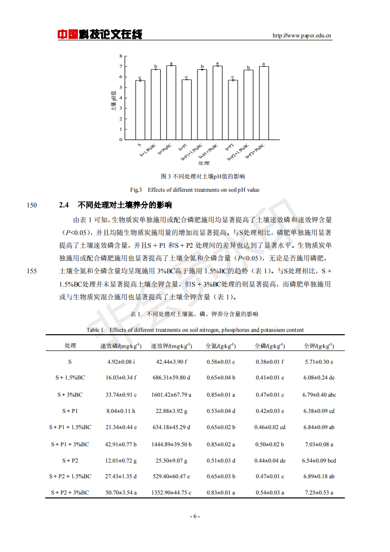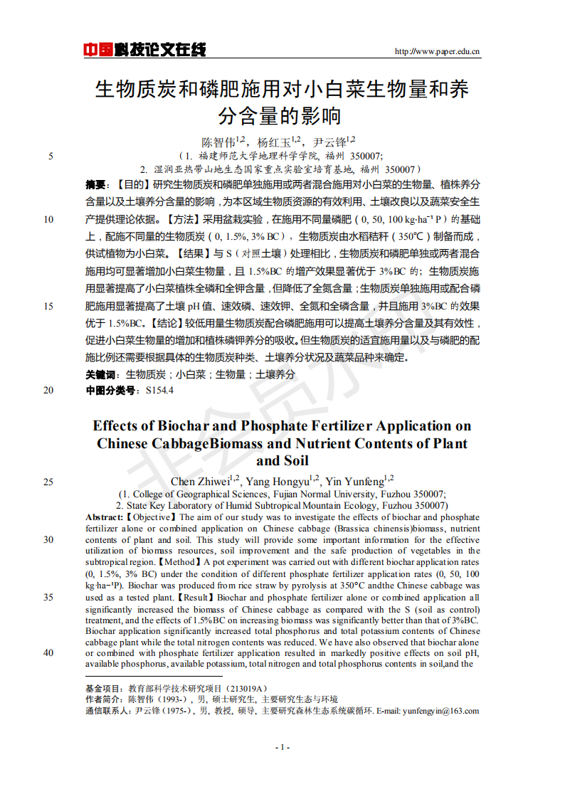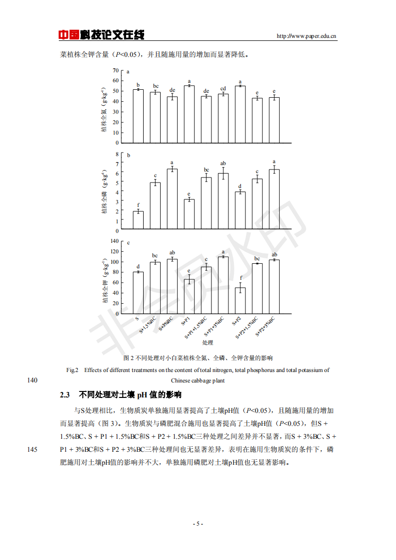 生物质炭和磷肥施用对小白菜生物量和养分含量的影响