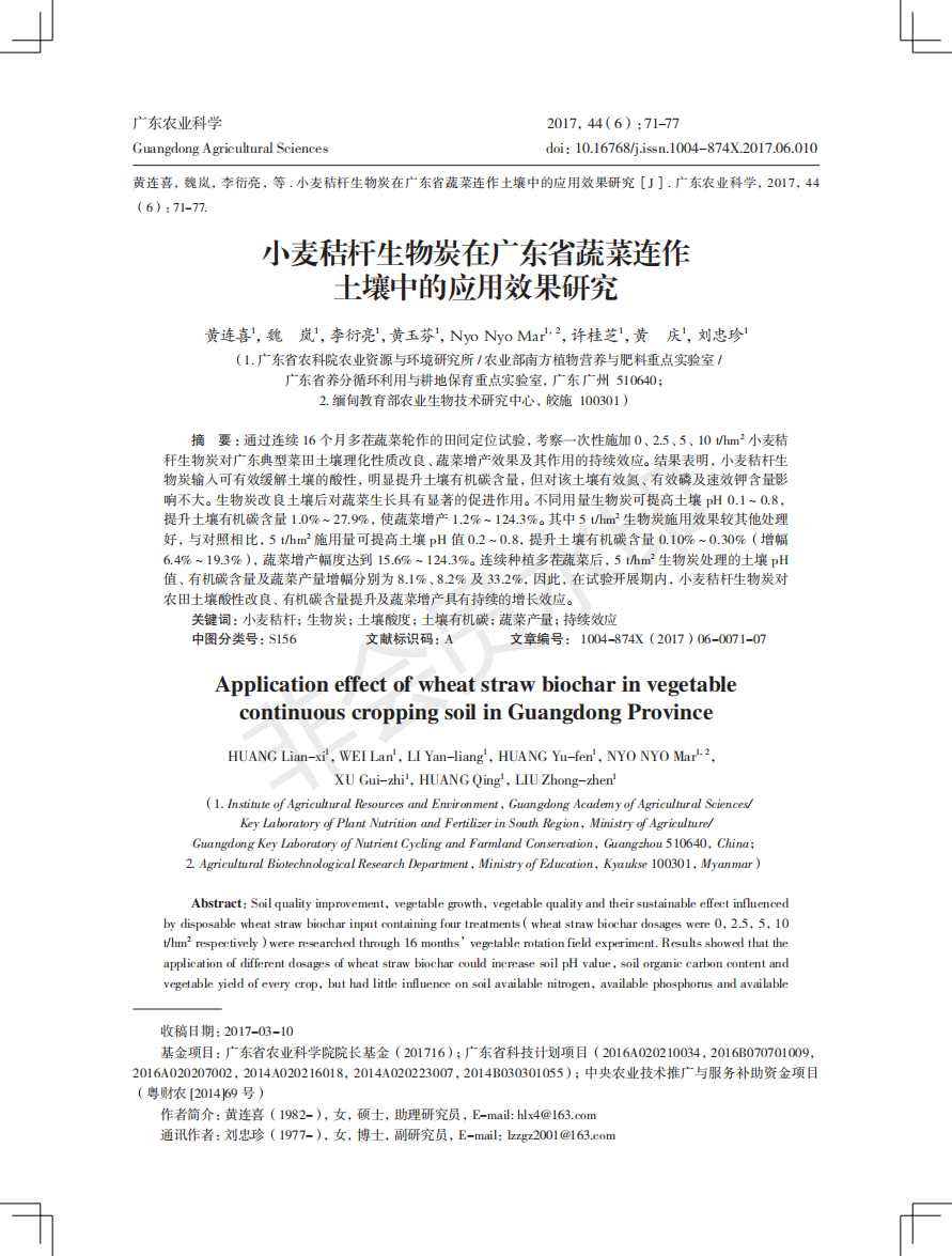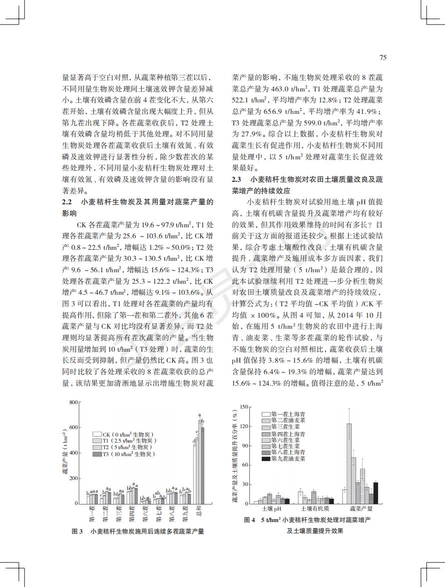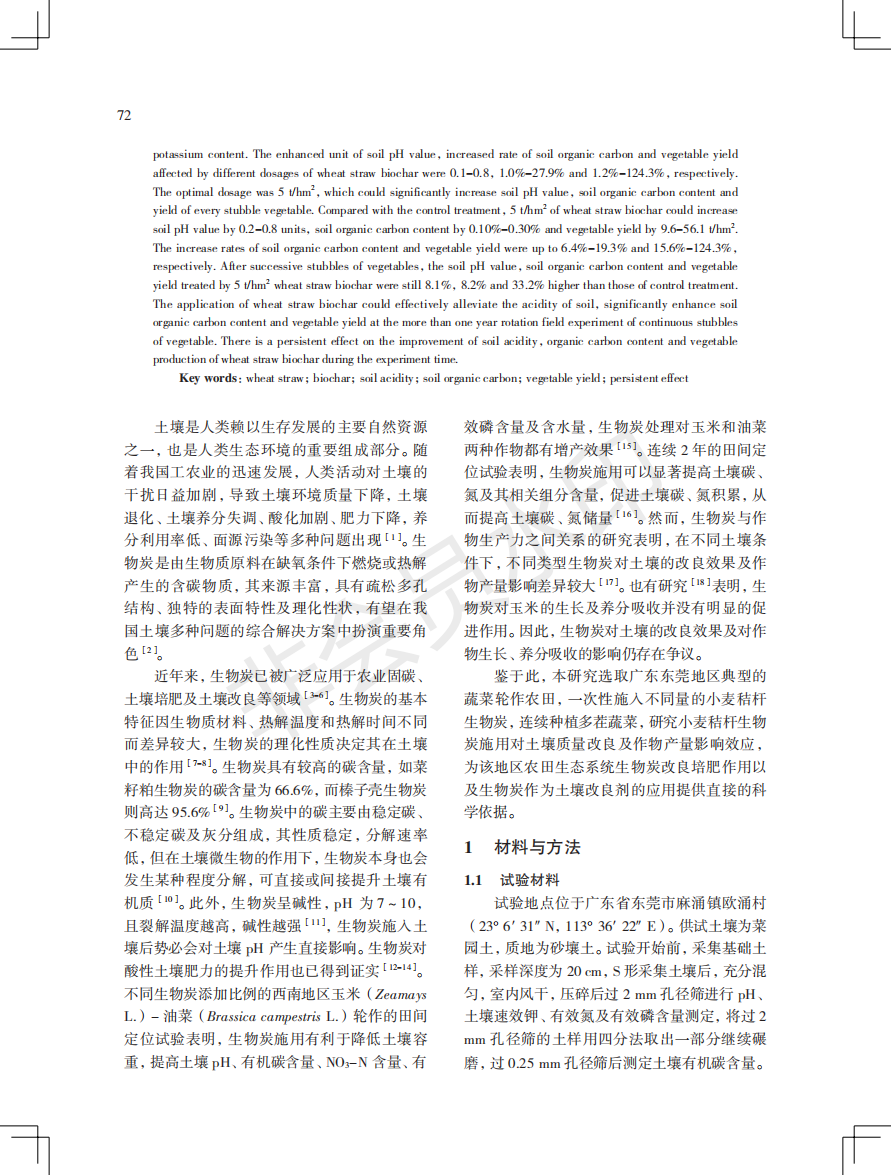 小麦秸秆生物炭在广东省蔬菜连作土壤中的应用效果研究