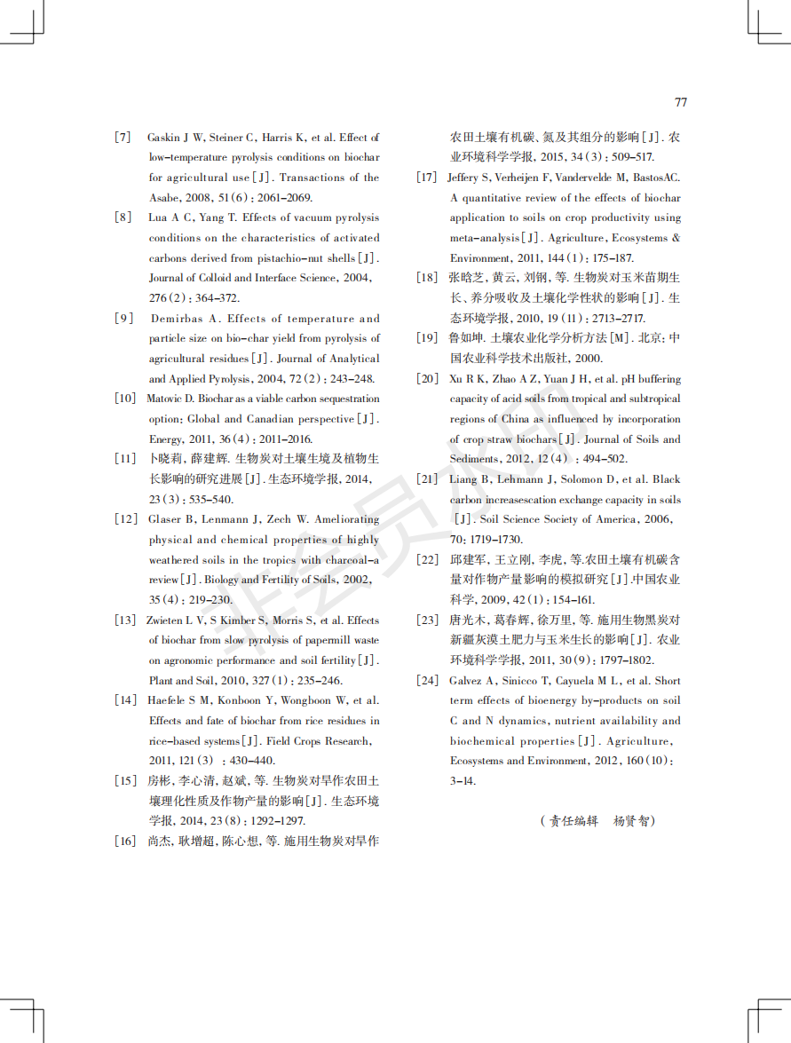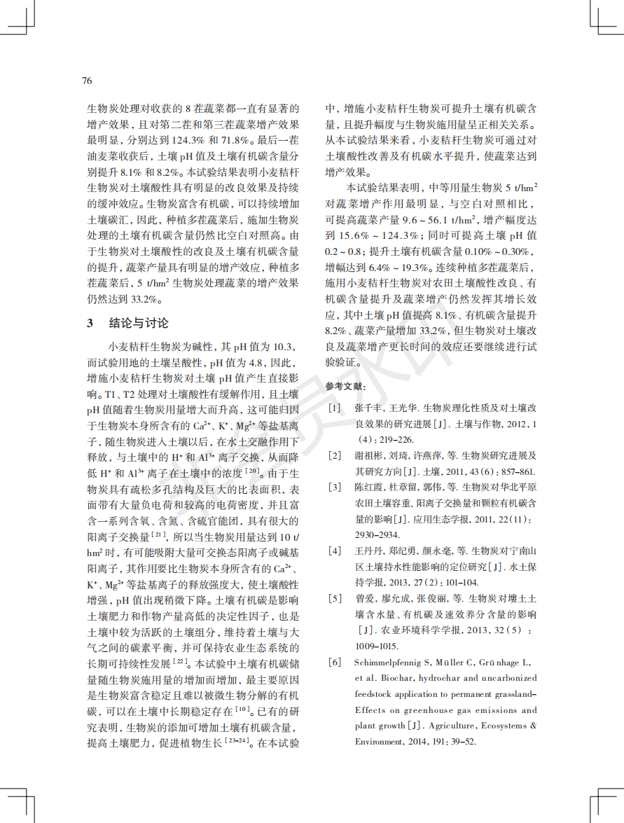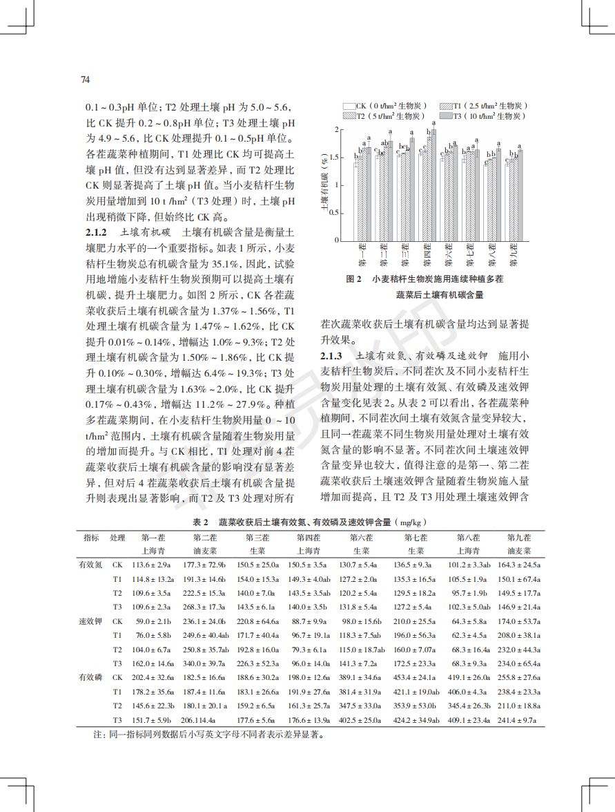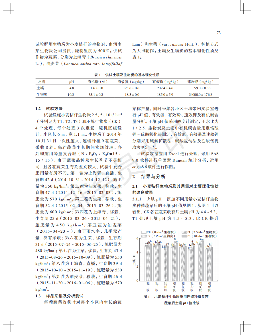 小麦秸秆生物炭在广东省蔬菜连作土壤中的应用效果研究