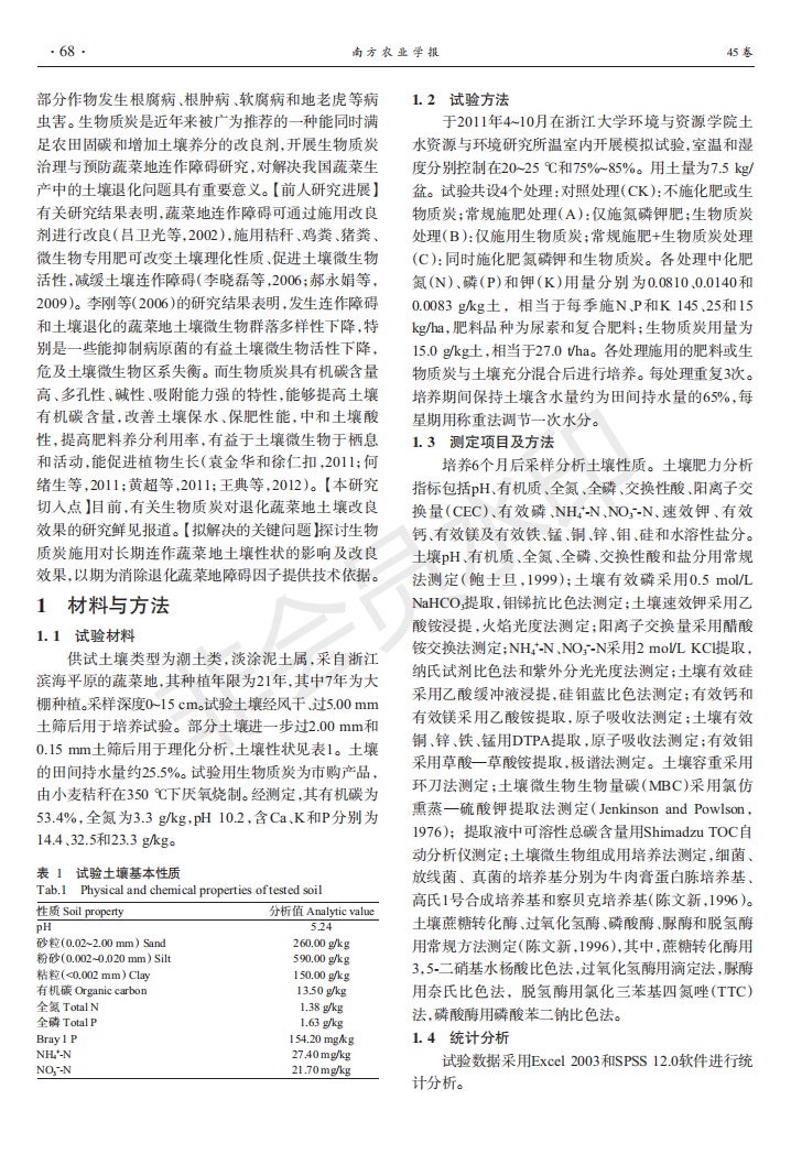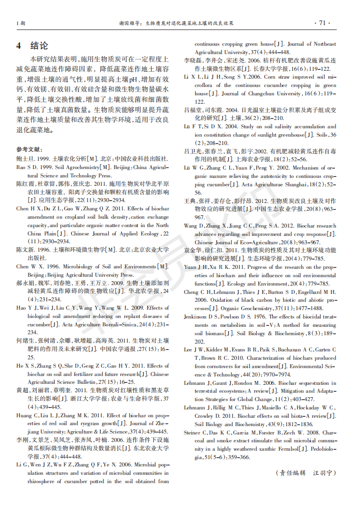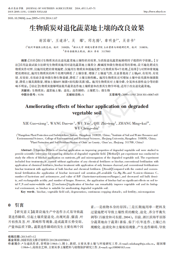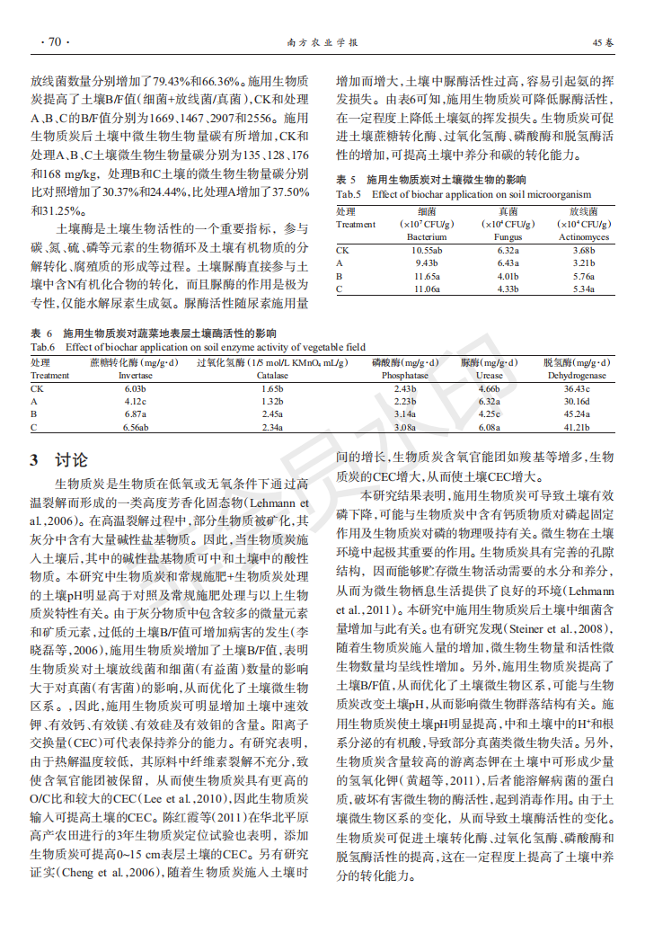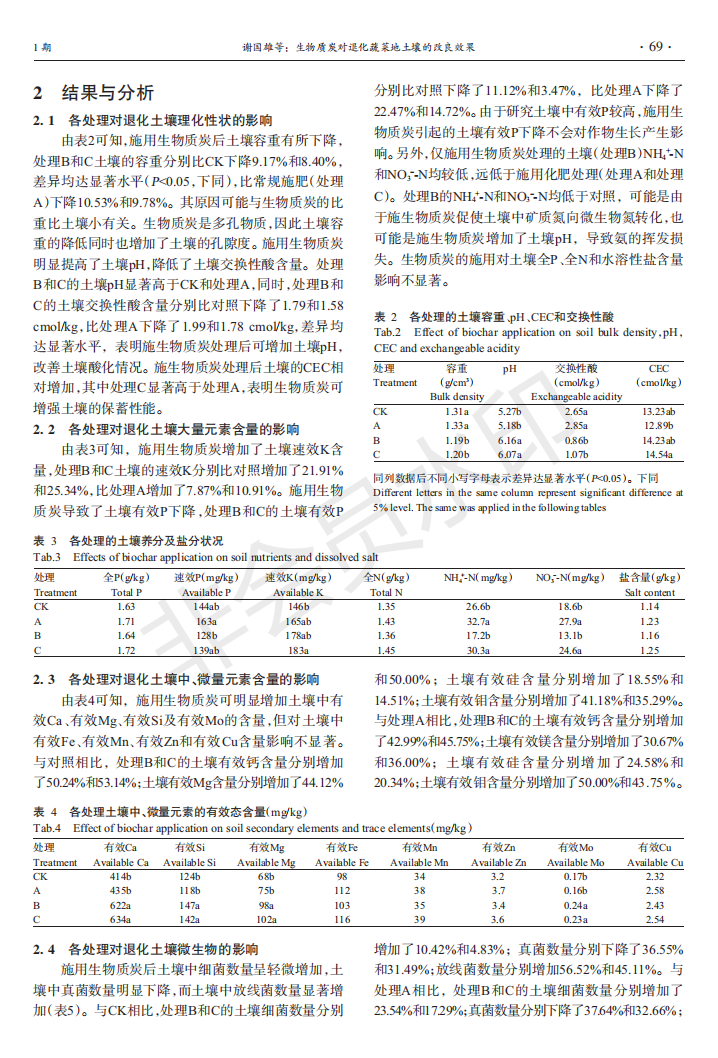生物质炭对退化蔬菜地土壤的改良效果