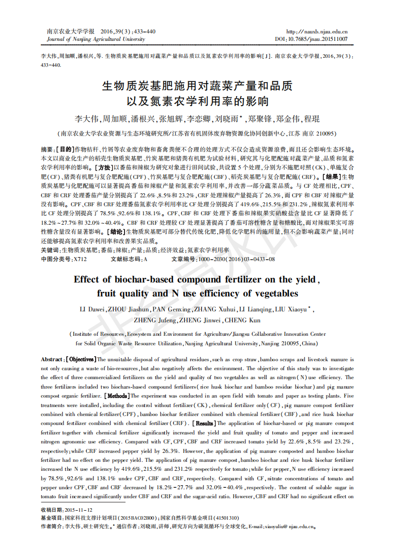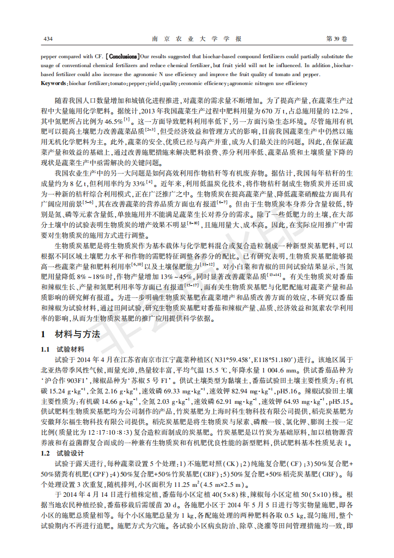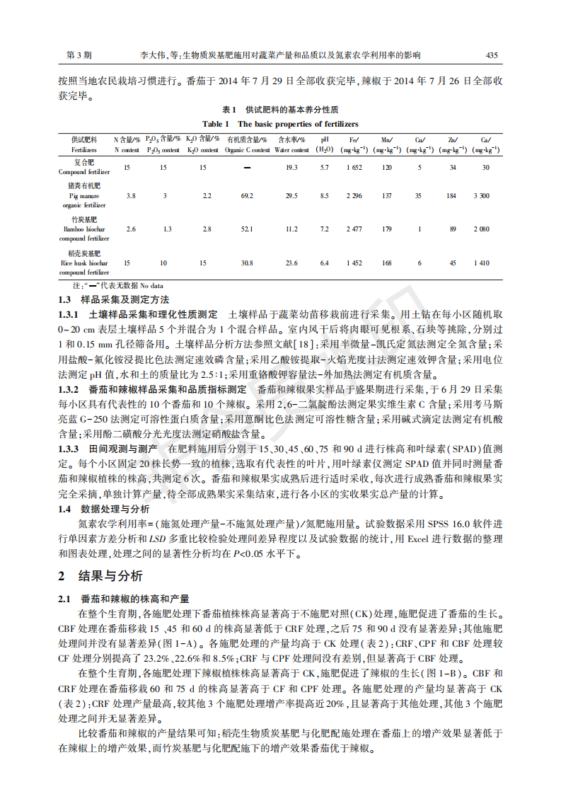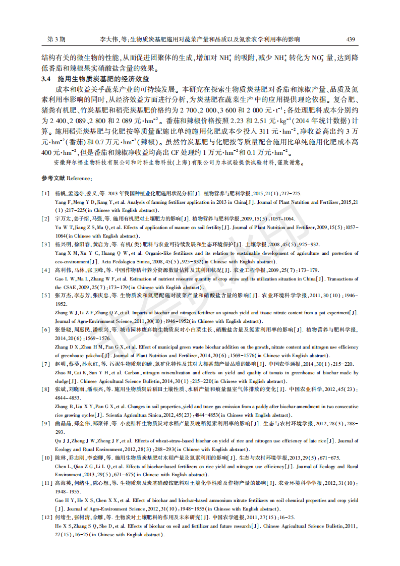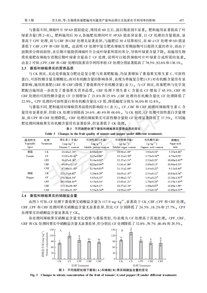 生物质炭基肥施用对蔬菜产量和品质以及氮素农学利用率的影响