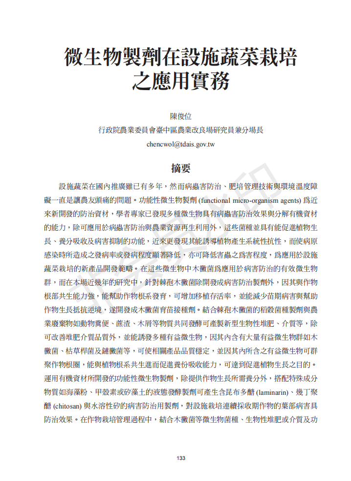 微生物在蔬菜生产之应用实例