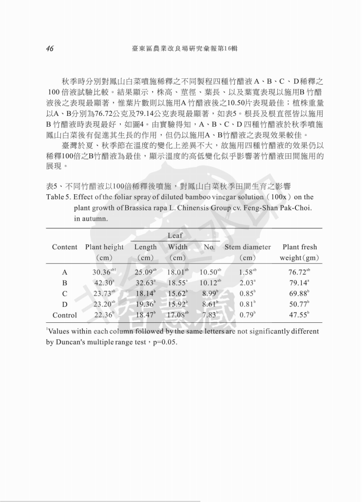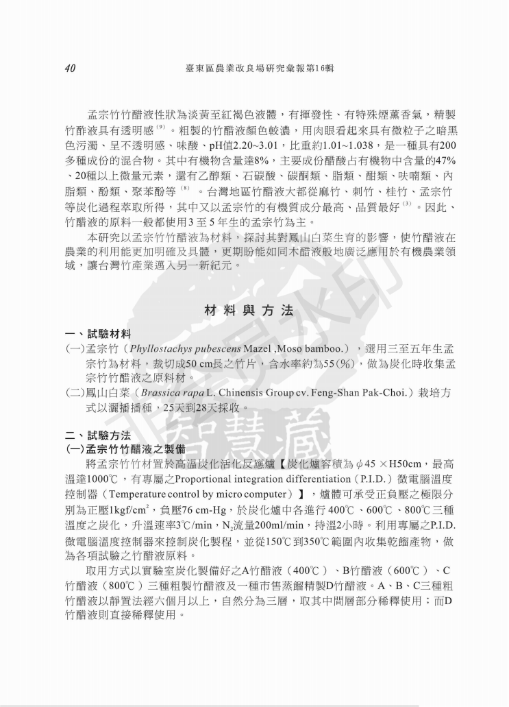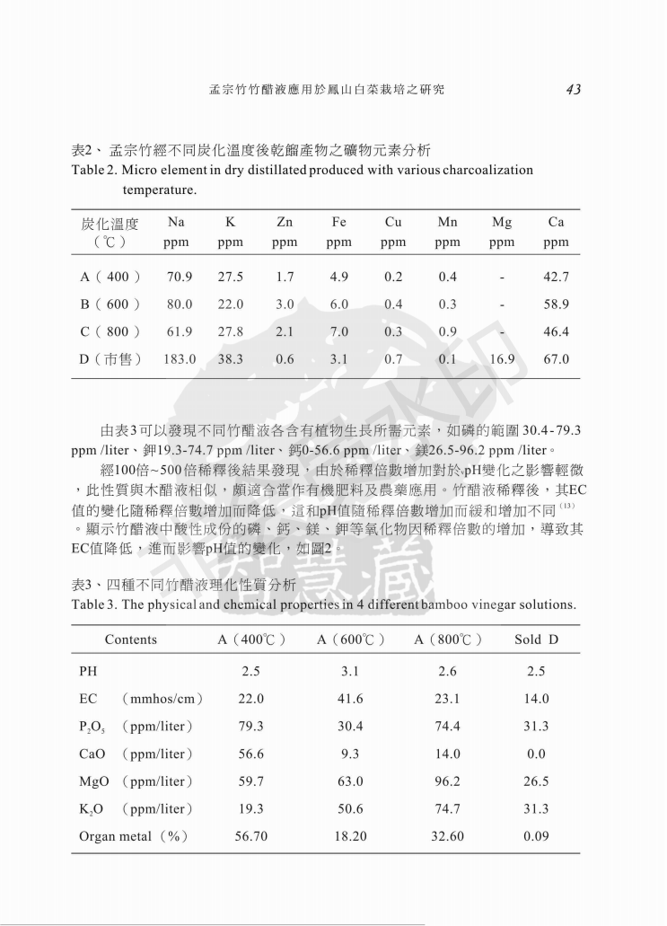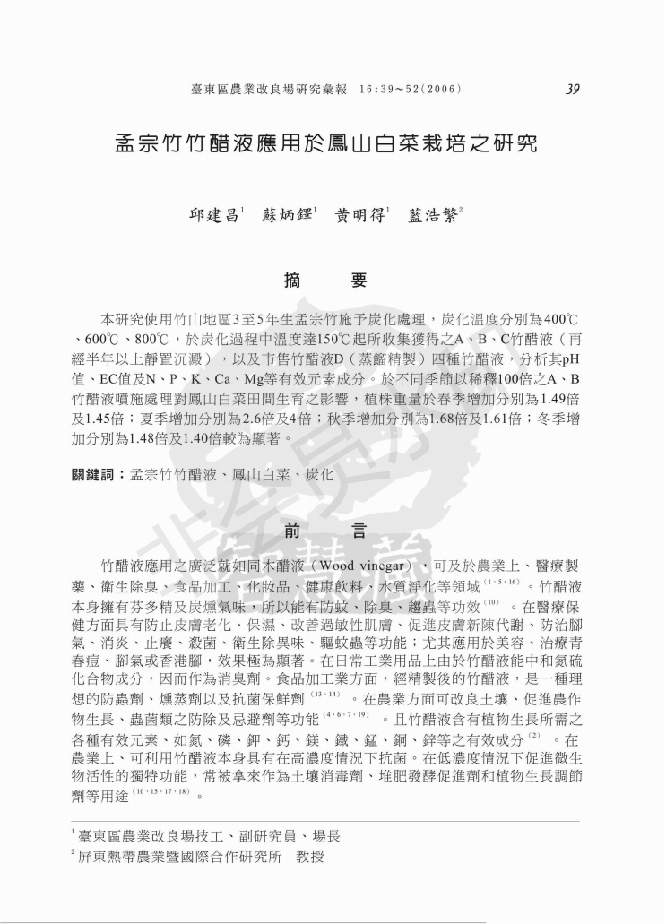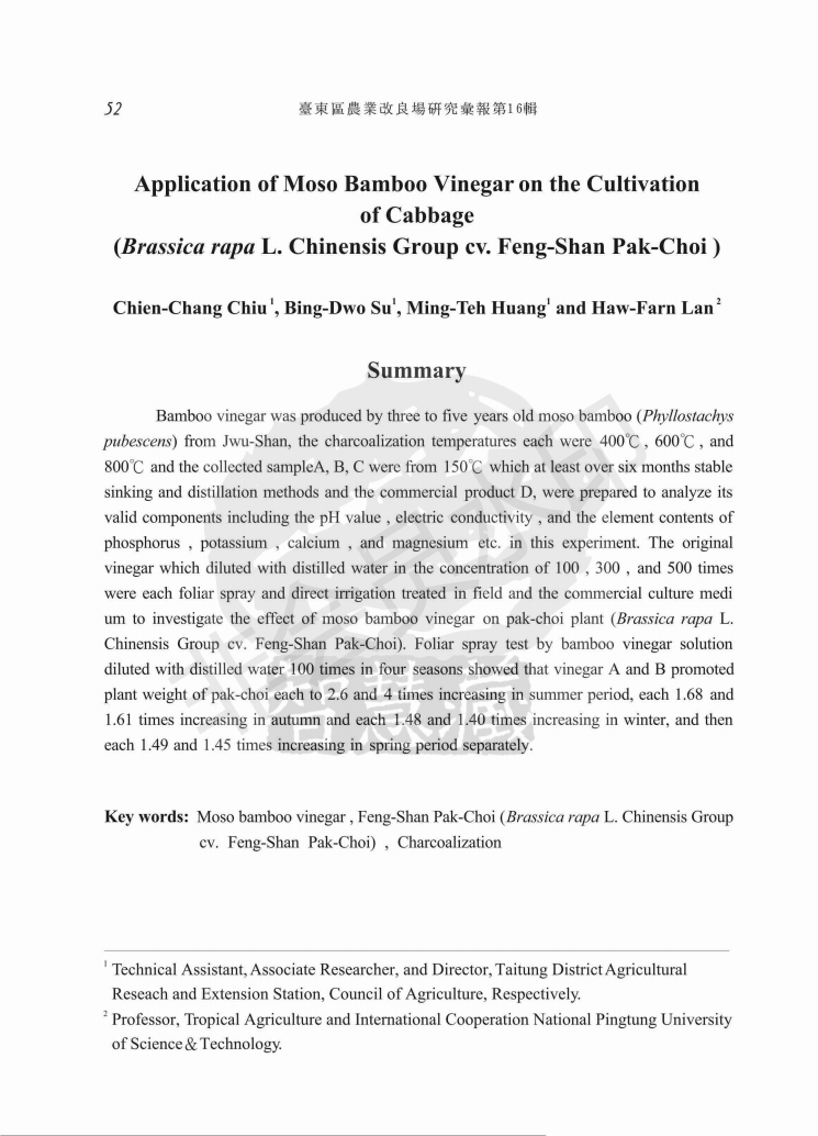 孟宗竹竹醋液应用于凤山白菜栽培之研究