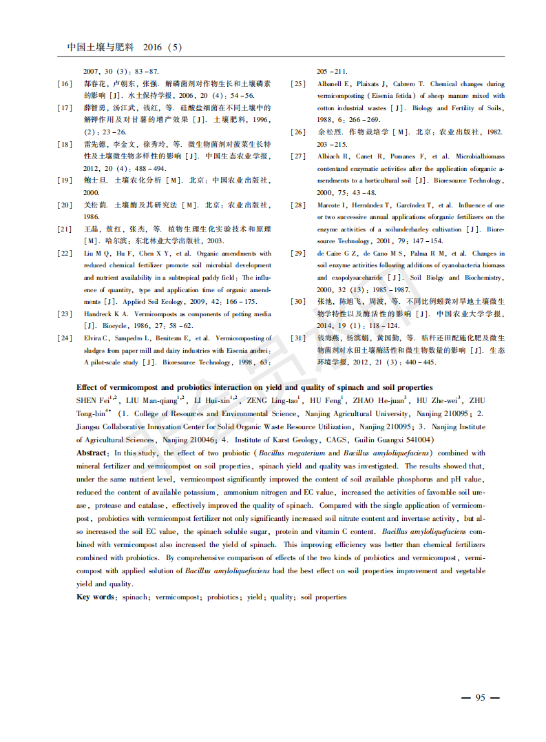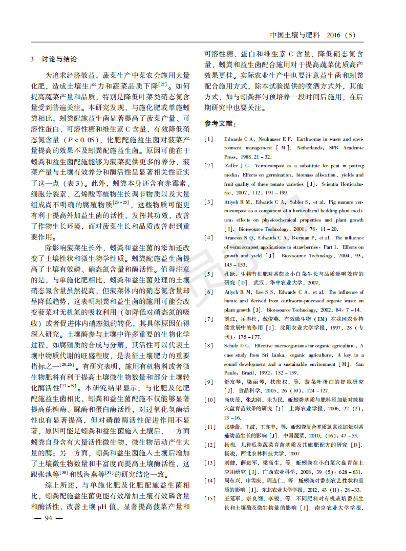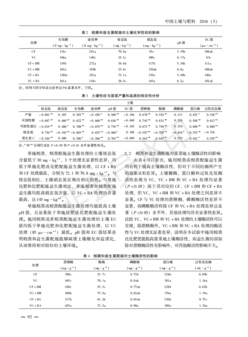 蚓粪和益生菌互作对土壤性状,菠菜产量和品质的影响