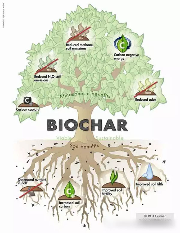 | 什么是生物炭? 生物炭是指生物质在缺氧或低氧环境下经过热化学转化后的固体产物。在其他技术术语中,生物炭是指由有机材料(如木材、粪肥或叶子等生物质)在有限的氧气(O2))供应以及相对较低的温度(<700℃)条件下热裂解后的产物。这个过程类似于木炭生产,这也许是人类发展最古老的工业技术。生物炭与一般木炭不同—-主要用作燃料—-其中一个主要应用是作为土壤改良剂,改善土壤条件以及减少温室气体排放量。 生物炭有何作用? 可持续发展的生物炭是一个有力简单的工具,可以 应对全球变暖; 产生土壤增强剂,固碳,使土壤更加肥沃 减少农业废弃物 生产清洁的可再生能源。在某些生物炭系统中,这四个目标都可以达到,而在其他的,至少能达到两个以上。 生物炭是如何生产的? 碳化是指通过还原热处理将原料转化成生物炭的过程。其中受到时间、热量和压力等因素影响,而这些因素会因不同设备以及原料有差异。有两个主要过程:热解或气化。在生产生物炭的过程中,也会产生气体或油状的能源产品。这些能源产品可用于其它用途,或者可以简单燃烧,释放热量。此外,生产生物炭可以利用各种各样的生物质原料。 如何判断生物炭能提高作物产量? 目前有大量文献资料量化描述了生物炭有利于提高农作物产量。过去几年里,在热带地区对生物炭进行了田间试验。大多数据显示生物炭应用到土壤中,对土壤养分都产生了积极的影响。 在土壤中使用木炭已有上千年历史。最知名的例子是巴西肥沃的“黑土”(Terra Preta),日本也有在土壤中使用木炭。巴西和日本的传统都显示了生物炭对土壤有积极影响。 虽然生物炭对土壤和气候的影响是肯定的,但是一些生物炭的生产也值得探讨。目前正在努力多样化地在土壤中利用生物炭,实现生物炭价值最大化。 生物炭如何帮助农民? 使用生物炭可以改善土壤肥力。单独使用,或以一定比例与肥料等农用化学品组合添加到土壤中。当时,这些营养物质与生物炭组合使用时,可以减少其施用率。生物炭保存在土壤中,可以带来多年的好处。当将有机残留物转化成生物炭时,通过捕获在生物炭生产过程中释放出的能量,农民也可以得到能量产量。在工业化国家和发展中国家,土壤流失和退化在以前所未有的速度出现,对土壤生态系统性能产生深远的影响。在许多地区,土壤生产力的损失出现,尽管集约利用农药,对土水资源产生不利影响。生物炭在扩大土壤可持续管理上发挥重要作用,可以通过改进现有的最佳管理实践,不但提高土壤生产力还可以减少养分流失。 生物炭能否添加到碱性土壤? 大多数生物炭试验都是在酸性土壤中进行,使用较高的pH值(例如6-10)生物炭。一项分别将生物炭加入酸性和碱性土壤的对比研究发现,在酸性土壤中加入更有益农作物生长,而在碱性土壤中加入效果不明显。在另一项研究中,土壤中添加生物炭引起pH升高,当pH值大于6时,由于微量元素出现不足,对产量有不利的影响。所以往碱性土壤中加入任何有石灰含量的物质时,必须要谨慎。不过也有可能生产出适用于碱性土壤的生物炭。 生物炭在土壤中保存多久? 生物炭的特性取决于不同的原料以及生产方式。 生物炭一个统一特性,它在土壤中矿化的速度比其未碳化材料(原料)慢得多。大多数生物炭确实有一个小部分不稳定(易分解)的碳,但通常更大部分是顽固的(稳定)。科学家已经证明,这种稳定部分平均停留时间(即生物炭将在土壤中持续的时间估计)从几十年到几千年不等。 为什么生物炭在土壤中的持久性很重要? 生物炭并入土壤中的持久性之所以至关重要原因是生物炭的环境效益:首先,它决定了在生物炭的碳元素封存在土壤中和对气候变化的减缓的持续时间;其次,它决定了生物炭对土壤和水的质量效益的持续时间。 生物炭如何减缓气候变化? 当前大量农林业废弃物和其他生物质都是烧毁或置之不理,这些都会分解从而释放二氧化碳(CO2)和甲烷(CH4)- 大气中两个主要的温室气体(GHGs)。当在全球范围内通过将亿吨生物质转化为生物炭,有研究表明,生物炭有潜力可以降低大气中的温室气体浓度,以减缓全球气候变化(Woolf等人, 2010)。 生物炭产业成功与否依赖于碳市场? 生物炭可为农民带来直接的效益,以及许多其他可量化的环境效益,其中包括减缓气候变化。尽管正在努力建立机制,以量化和货币化生物炭对环境的积极效应——主要以碳抵消的形式——这只会增加对农民和其他利益相关者现有的财政奖励。 生物炭的生产是可持续的吗? 生物炭的生产和使用包括一个复杂的系统,它的可持续性涉及各种组件。在支持生物炭行业商业化发展的所有关键因素中,原料供应和可持续产量问题是目前最重要的,无论是从可持续发展还是金融和商业角度上看。这将要求用于生物炭生产的生物质来源的适当性,并能够承受整个生命周期分析。生物炭生产应该利用废物。当前大量的农业、市政和林业生物质烧毁或分解释放出二氧化碳和甲烷到大气中。这些包括农作物残余物(如坚果壳、果核等),食品、林业废弃物和动物粪便。用这些材料制作生物炭将意味着与其他土地用途没有竞争。 生物炭是改善土壤和土壤固碳的工具。但是这项技术必须通过尊重原住民的土地权利和支持健康自然生态系统的方式来实现。 生产和使用生物炭的成本和收益是什