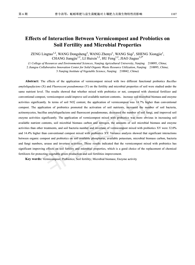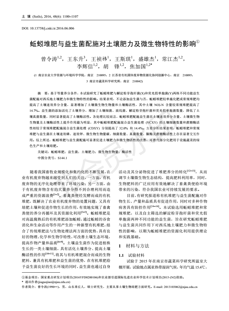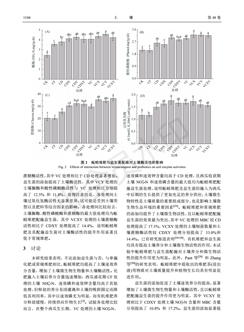 蚯蚓堆肥与益生菌配施对土壤肥力及微生物特性的影响