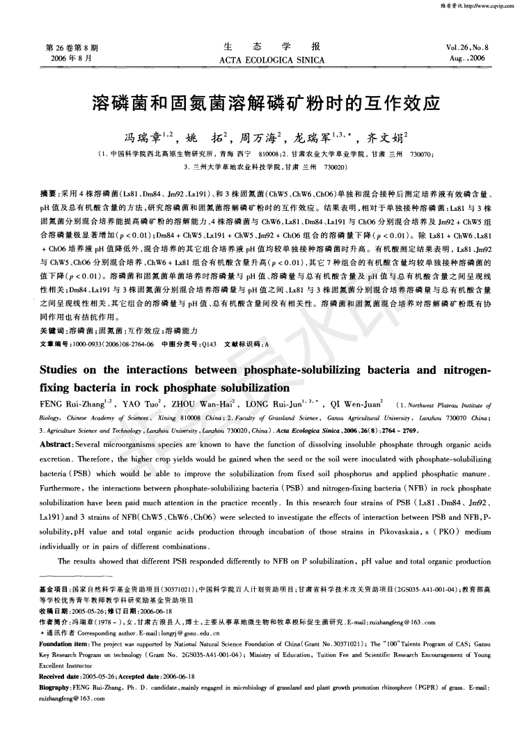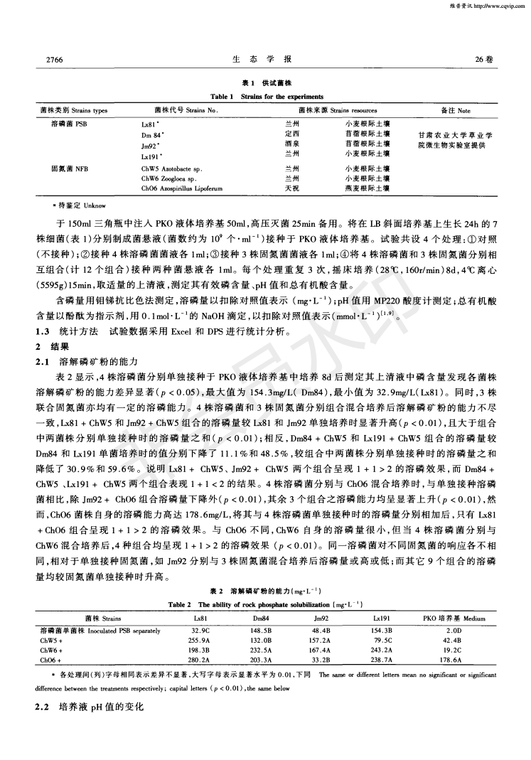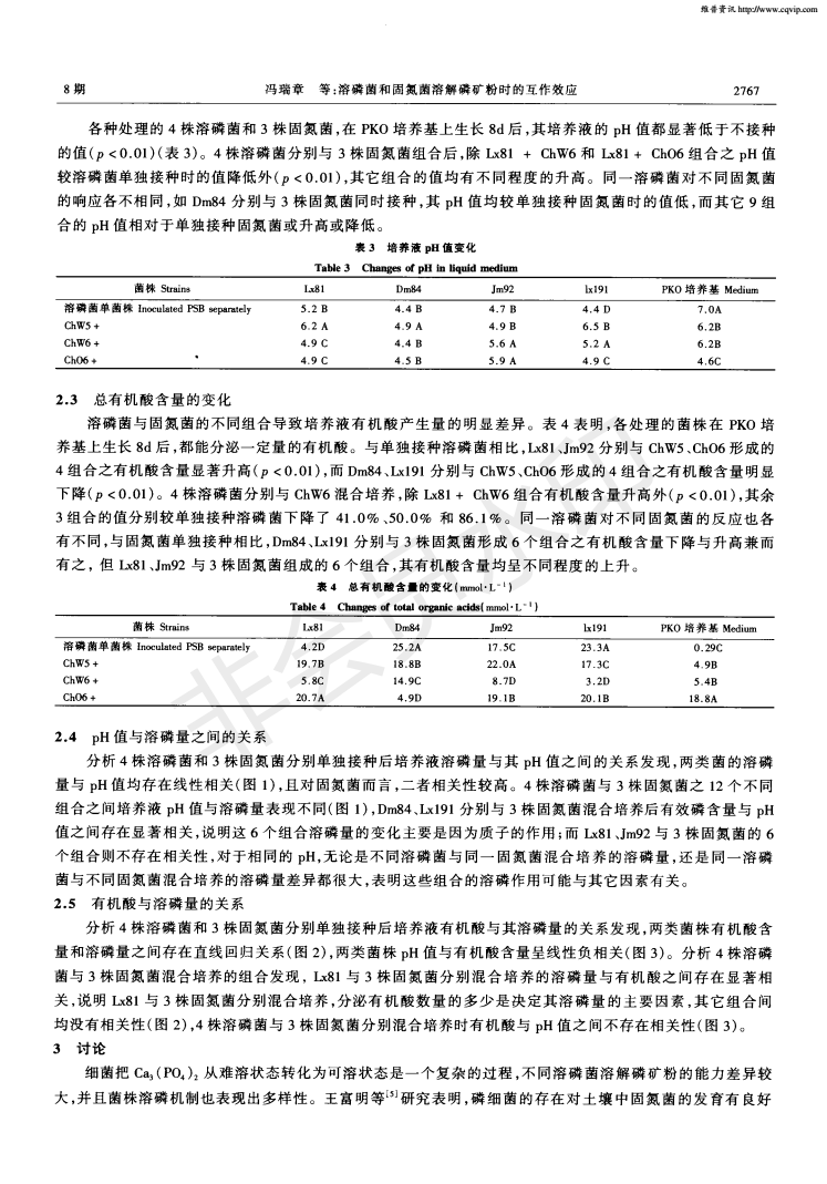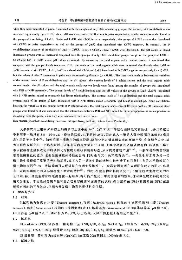 溶磷菌和固氮菌溶解磷矿粉时的互作效应